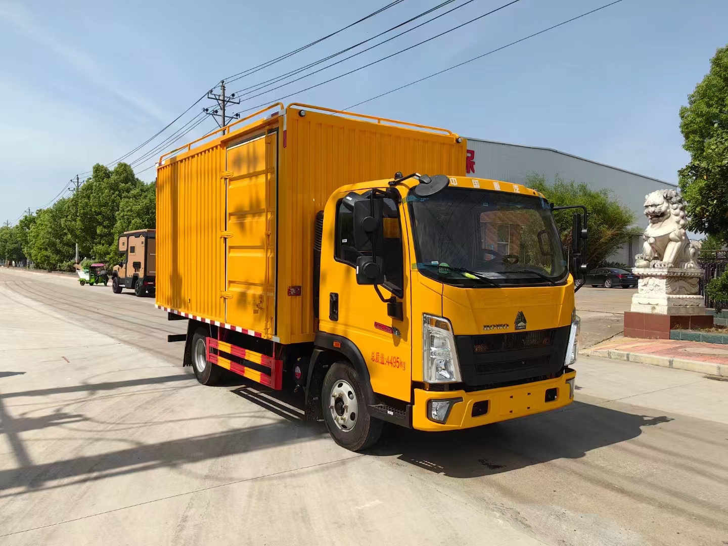 | 底盤配置 | 采用重汽豪沃單排駕駛室,維柴130/140馬力國六發(fā)動機,萬里揚5檔變速箱,7.00R16鋼絲胎,5T后橋,3280軸距,電動玻璃門窗,原廠空調,ASR防側滑,ABS防爆死系統(tǒng)。 | ||