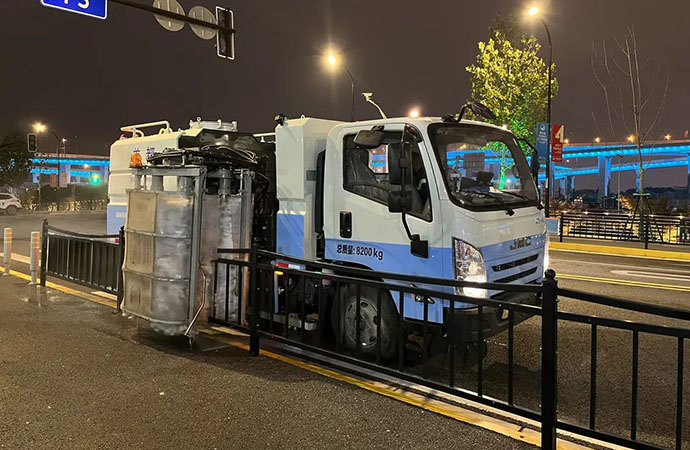 護欄清洗車配有左右前角噴與大容量清水箱,作業(yè)過程中對路面噴水降塵,能夠有效防止路面二次污染。