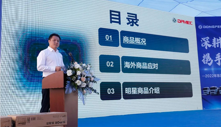 楊濤助理表示,中國東風汽車工業(yè)出口有限公司是東風汽車集團有限公司的二級單位,是一家專業(yè)從事東風集團汽車出口、全球供應鏈服務、工業(yè)投資的外貿公司。2021年東風的海外事業(yè)取得了亮眼的成績,海外出口車輛(含成套散件)15.4萬輛,同比增長了1.2倍,創(chuàng)造了歷史最高紀錄;2022年將沖刺挑戰(zhàn)20萬輛的銷售目標,借此推薦會的機遇,希望程力和隨州的銷售經理,能夠搭上東風海外事業(yè)發(fā)展的快速列車,共創(chuàng)新業(yè)績新輝煌。