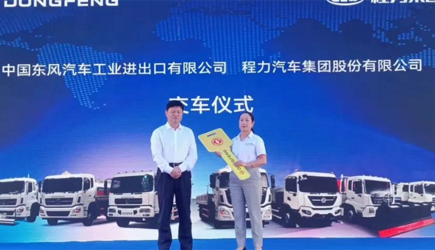 隨后,中國東風(fēng)汽車工業(yè)進出口有限公司商用車海外營銷部中重型產(chǎn)品總監(jiān)吳永剛與程力集團國際市場部業(yè)務(wù)經(jīng)理陳葦舉行了交車鎖匙牌授牌儀式。