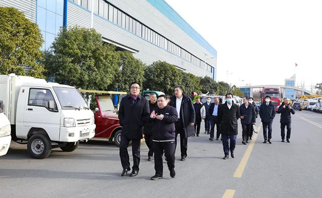 王志才總經(jīng)理一行領(lǐng)導(dǎo)及負(fù)責(zé)人,不畏凜冬寒冷,先后步行參觀程力(曾都)汽車(chē)工業(yè)園、程力南郊汽車(chē)裝備制造工業(yè)園兩大基地。來(lái)賓們看產(chǎn)品、下車(chē)間、問(wèn)工藝,無(wú)一不細(xì)致入微,調(diào)研考察工作扎實(shí)認(rèn)真高效。