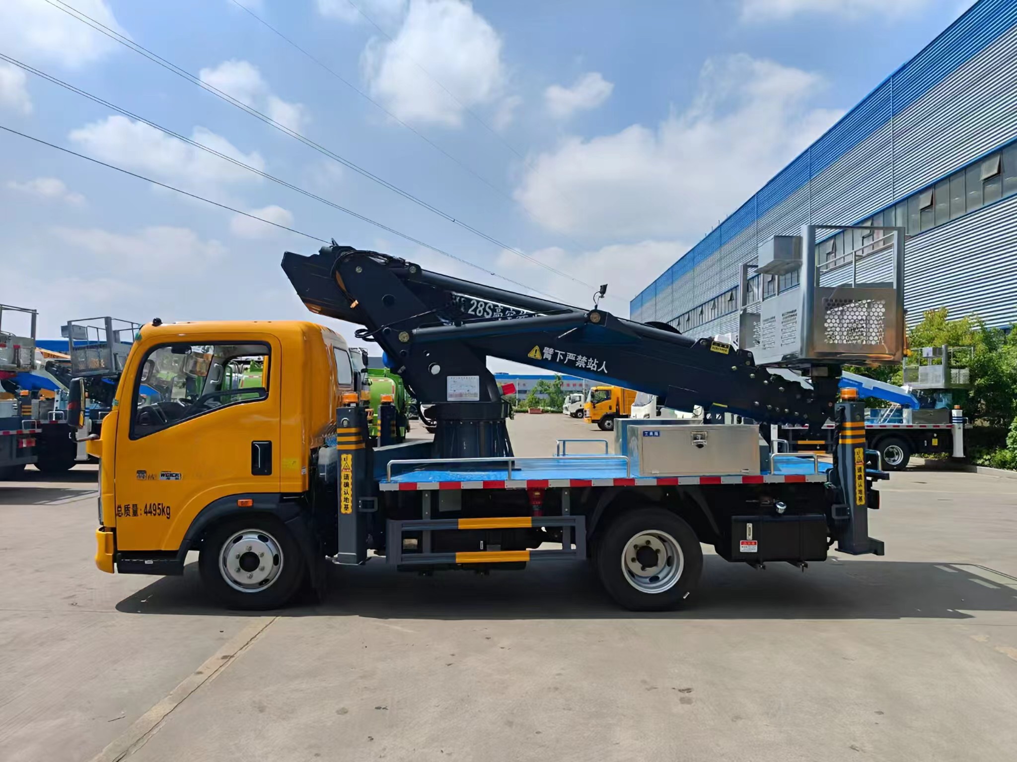 | 上裝配置 | 高空作業(yè)車(chē)基本功能安全配置: 最大作業(yè)高度23米,28米,31米 工作平臺(tái): 高強(qiáng)度不銹鋼尺寸:1600*700*1000mm;360度連續(xù)回轉(zhuǎn),電控操作,另配有手動(dòng)應(yīng)急操作; 控制系統(tǒng):CAN總線(xiàn)控制系統(tǒng),配有無(wú)線(xiàn)遙控器、實(shí)現(xiàn)無(wú)級(jí)調(diào)速, 調(diào)平系統(tǒng):靜液自動(dòng)調(diào)平 臂架形式:★多邊形型工作臂,同步伸縮 支腿:★前V后H型/前V后V單獨(dú)可調(diào)(控制) | ||
